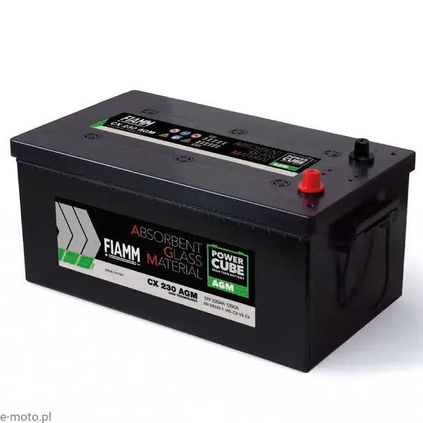 Akumulator 230Ah 1200A 12V Fiamm AGM CX230F to wysokowydajne źródło energii zaprojektowane z myślą o pojazdach o dużym zapotrzebowaniu na prąd oraz pracy w wymagających warunkach. Technologia AGM (Absorbent Glass Mat) zapewnia pełną bezobsługowość, wysoką odporność na wstrząsy oraz możliwość pracy w głębokich cyklach.