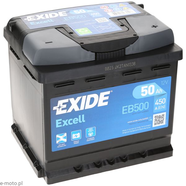 50Ah 450A 12V Akumulator EXIDE EXCELL EB500