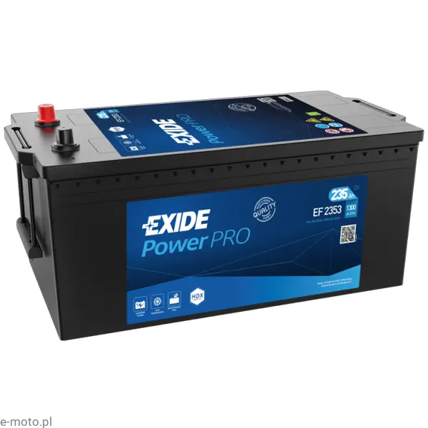 Akumulator Exide EF2353 z serii PowerPRO to najmocniejsza jednostka w swojej klasie, zaprojektowana do pracy w najbardziej wymagających warunkach transportowych i przemysłowych. Dedykowany do pojazdów ciężarowych, autobusów oraz maszyn roboczych o dużym zapotrzebowaniu na energię, zapewnia maksymalną moc rozruchową i stabilne zasilanie nawet przy ekstremalnym obciążeniu.