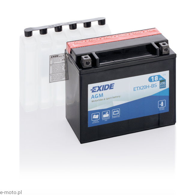 Motocyklowy akumulator EXIDE AGM 18Ah/270A ETX20H-BS