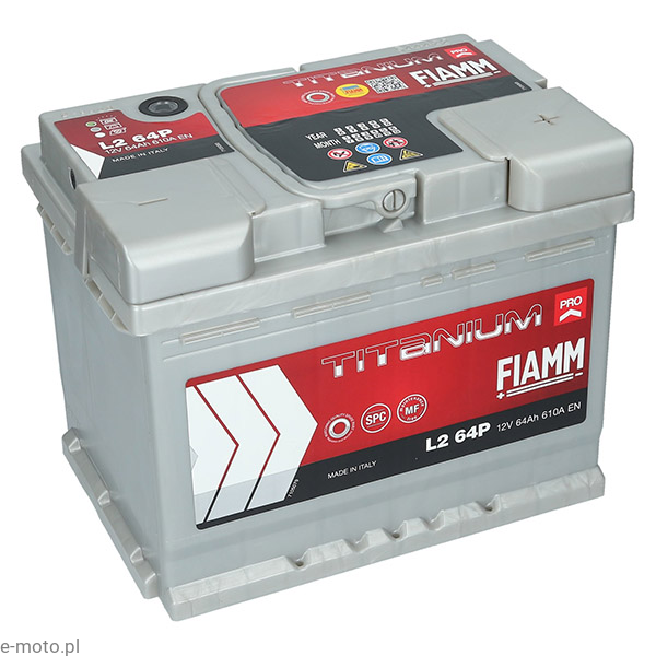 Akumulator Fiamm PRO L2 64P P+ FTP64+ 12V 64Ah 610A (EN) to bezobsługowe źródło energii przeznaczone dla samochodów osobowych i lekkich pojazdów z podwyższonym zapotrzebowaniem na prąd. Seria PRO zapewnia stabilne parametry pracy, wysoką odporność na wibracje oraz długą żywotność przy codziennej eksploatacji.