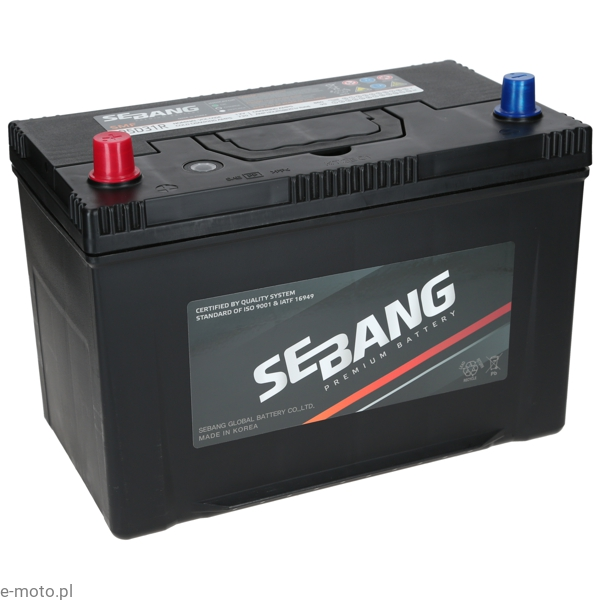 Akumulator Sebang 12V 90Ah 730A +L Japan D31 HN95SBL to wydajne i trwałe źródło energii przeznaczone do pojazdów wymagających wyższej mocy rozruchowej oraz stabilnego zasilania systemów pokładowych. Produkt renomowanego producenta z Korei, cenionego za wysoką jakość i powtarzalność parametrów.