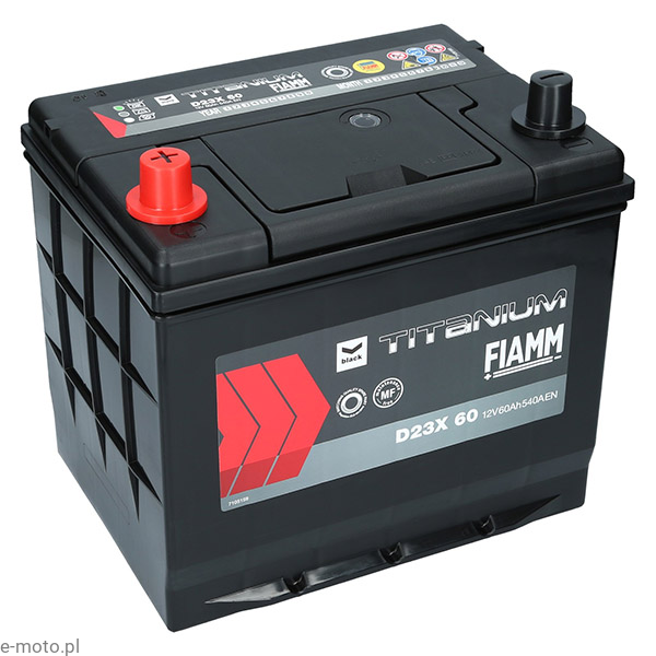 Akumulator Fiamm BLACK D23X 60Ah 540A 12V L+ (JFTP60--) to wydajne i bezobsługowe źródło energii przeznaczone dla samochodów osobowych oraz lekkich pojazdów o podwyższonym zapotrzebowaniu na prąd. Dzięki prądowi rozruchowemu 540A akumulator zapewnia pewny start silnika w każdych warunkach, w tym przy niskich temperaturach.