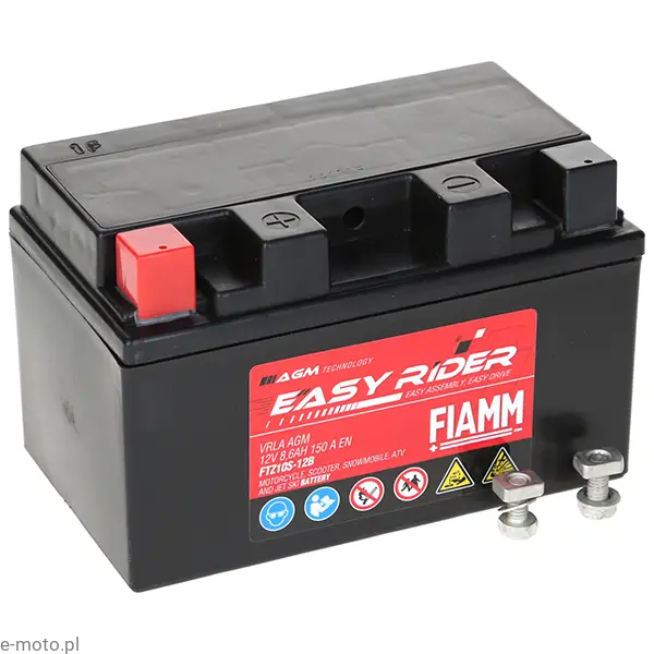 Akumulator Fiamm Easy Rider FTZ10S-BS 12V 8,6Ah 150A (YTZ10S-BS-F) to kompaktowe i wydajne źródło energii przeznaczone do nowoczesnych motocykli, skuterów oraz pojazdów powersport. Dzięki zwiększonej mocy rozruchowej zapewnia pewne uruchamianie silnika oraz stabilne zasilanie układów elektrycznych nawet w wymagających warunkach.